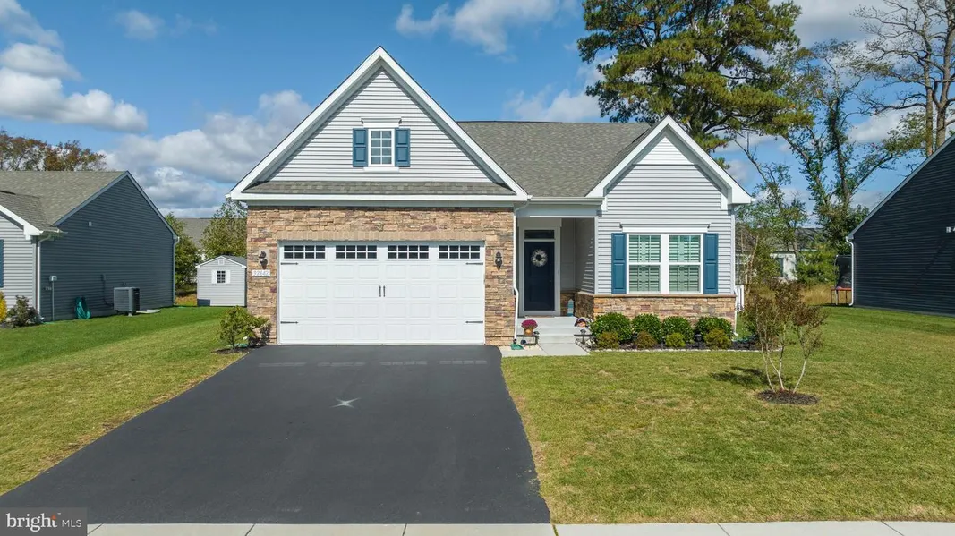 Just minutes to Bethany Beach, Fenwick Island and Ocean City, this beautifully maintained and upgraded home has it all. This gracious home welcomes you as you step into the spacious foyer. and impresses even more with its luxury vinyl plank flooring and plantation shutters throughout the first floor. To the right of the entry is the first bedroom and a full bath with a tub/shower and custom shower door. Proceed down the foyer hallway to find the flex room/office on the right with its shiplap wall. The home now opens up to the living/dining/kitchen area. The kitchen boasts upgraded white cabinetry, quartz countertops, tile backsplash, hand blown pendant lights, 2 ovens, an upgraded quiet dishwasher, stainless steel appliances, and a counter-height island. The living area also has a shiplap wall and gas fireplace. This open-concept layout has LVP flooring and crown molding throughout. The large owner's suite offers bright natural light, a custom shiplap wall, and a luxurious bathroom with walk-in closet, double vanity sinks, and a custom cast glass shower door. Enjoy the company of family & friends in the private fenced-in backyard, complete with a 10.5 x 12 covered porch and a 12 x 26 paver stone patio. Guest will also enjoy the privacy of the 2nd floor bonus room, bedroom, and full bath where they can control their heating/cooling with the dual zone Nest thermostat. There is a bump out storage area in the garage, and a kayak/canoe lift. For additional storage, see the fully encapsulated crawl space. The community also offers storage for boats and campers for an additional fee. This home truly has it all and is move-in ready.