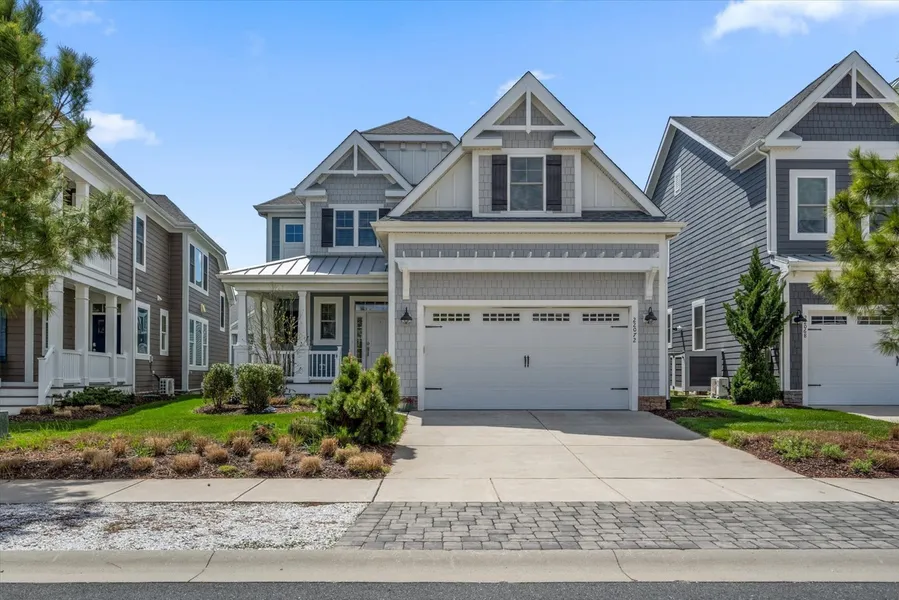 Welcome to 22072 Seaport Square, a stunning Jasmine model home nestled in the amenity-rich coastal community of Bayside. This impeccably designed retreat blends modern luxury with relaxed beachside charm, perfect for both entertaining and everyday living. From the moment you enter, you are greeted by an open-concept floor plan filled with natural light and elegant coastal finishes. The heart of the home is the gourmet kitchen, complete with stainless steel appliances, a gas cooktop, glass tile backsplash, granite countertops, a pantry, and a spacious two-tier island ideal for gathering with family and friends. Just off the kitchen, the dining area offers a cozy space for casual meals or stylish dinner parties. The main-level primary suite is a private oasis featuring a tray ceiling, two generous walk-in closets, and a spa-like en suite bath with a custom tiled shower, frameless glass door, built-in bench, and a dual sink vanity. Enjoy even more living space with a sunroom boasting vaulted ceilings, a powder room for guests, and a convenient laundry room with interior access to the garage. The great room impresses with soaring ceilings and an elegant switchback staircase leading to the upper level, where you will find a versatile loft, two additional bedrooms, a full bath with a private shower, and an oversized storage room perfect for converting into a home office, gym, or media room. All of this is located in a thoughtfully planned resort-style community surrounded by natural coastal beauty and world-class amenities. Just minutes from the beaches of Fenwick Island, Bethany, and Ocean City, this is an opportunity to experience the Bayside lifestyle.