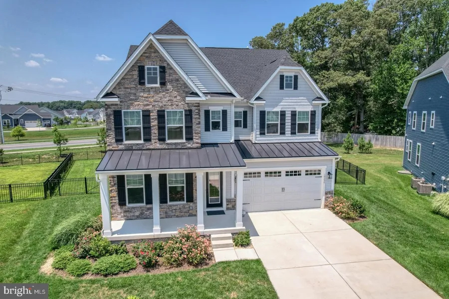 This is the one that you have been waiting for... ideal for family or folks that enjoy entertaining. Step up to the inviting covered front porch providing protection from the elements. An open foyer leads you into an en-suite bedroom 5/office... whatever works best for your lifestyle. You will find a separate dining room to your left with plenty of room for a large table and hutch. As you step to the rear of the home, all of your daily living space is within the open floor plan family room and kitchen. The large family room features a gas fireplace and plenty of natural sunlight. The gourmet kitchen provides white cabinets, quartz countertops and a separate dining area for a kitchen table in addition to the large island with room for 4. There is a tremendous amount of counter space and cabinets in addition to a large walk-in pantry. There is a large covered porch off of the kitchen... ideal spot for grilling and chilling. A welcome center complete with cubbies makes the transition to the 2 car garage. The perfect area to organize jackets, shoes and backpacks. Upstairs you will find the primary suite with large walk-in closets and spa-like bathroom. Bedroom 3 is also en-suite for your children or guests privacy. Bedrooms 4 and 5 offer a large Jack & Jill bath. A large loft area upstairs is the excellent space for another TV/game room. There is a fully finished basement with two massive open spaces and a full bath. If you need a 6th bedroom, you have the room. Basement also features a door to the side yard with stairs. No problem getting furniture in and out. Hunter Douglas shades throughout home. The community has a club house with fitness center and community pool. Lawn maintenance is included so not your worry. You can take all of that extra time and drive to Lewes Beach or Rehoboth Beach in minutes. Easy access to grocery store, restaurants, outlets and movie theatre. Experience all that the Delaware Beaches offer including bike trails and plenty of family entertainment. There is room for a pool in the backyard. A rendering can be found in the photos to show potential for the back yard playground.