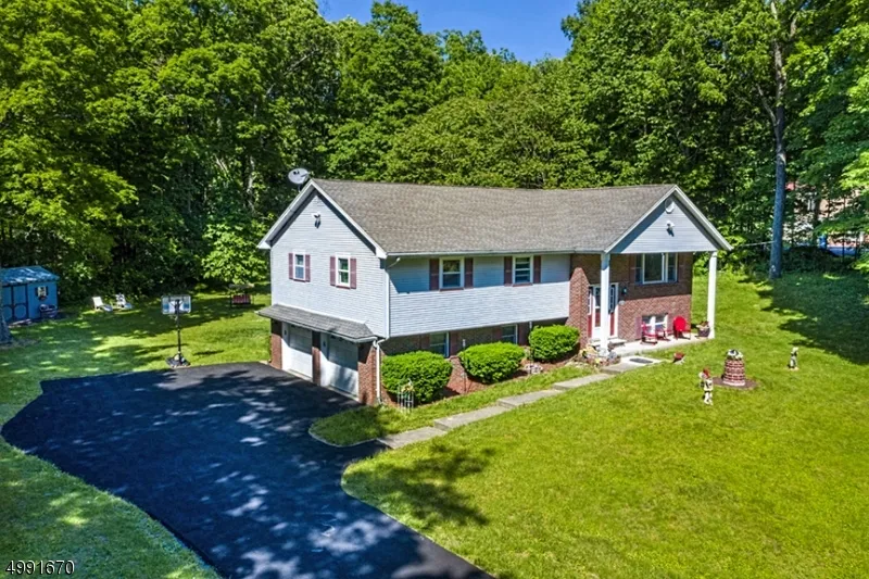 This custom bi-level rests on 1 level acre surrounded by privacy trees.