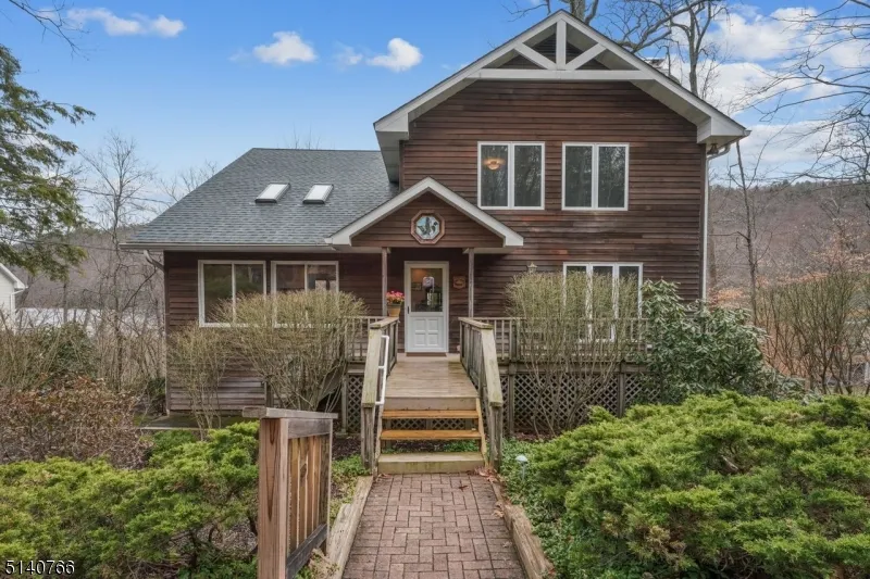 Lakefront in Stokes State Forest designed for entertaining and relaxation. The center foyer leads to the light filled LR with the vaulted ceiling and skylights. The LR opens to the den that looks out to the lake. The powder rm can be accessed from the den and kitchen. The FDR easily seats a party of 12 which flows to the large EIK with plenty of seating options, cabinets, a pantry and laundry. Sliding glass doors leads to the huge deck that looks out over the pool, the dock and the lake. The heated in-ground pool is has been completely refurbished and is ready for summer. Or head to your own private dock to go, canoeing or toast the sunset. On the 2nd fl is a bedroom facing the woods. The 2nd bedroom looks out to the lake and has its own deck to enjoy morning coffee. The prim. suite w/attached full bath also has its own private deck. The lower level has the fam. rm with a stone fpl, full...