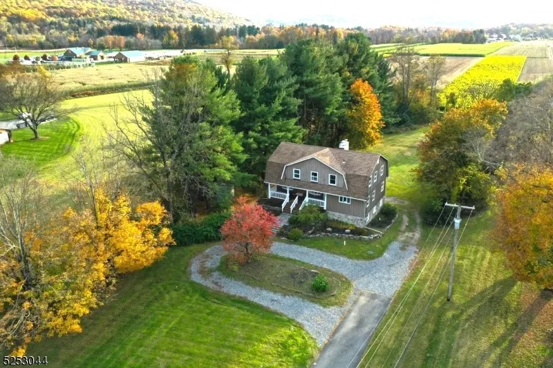 Experience serene living in this beautiful 4-bedroom colonial situated on 1.44 private acres, surrounded by picturesque fields and farmland. Set back from the road, the circular driveway guides you to an expansive front porch, a place to relax while also offering a warm welcome as you step inside. Spacious and bright with oversized windows streaming in natural light and allowing for scenic views throughout the seasons, the large living room, with a stately stone fireplace, is open to the large family room, making for great entertaining space. Both rooms feature beautiful wood floors that continue through to the dining room, which is open to the eat-in kitchen. The second-floor features 4 large bedrooms, laundry area, and a bonus room- currently used as an office. The above grade basement includes 2 garages and additional room w/ utility area. BRAND NEW SEPTIC/ GAS in street this year or early spring * 2508 sq. ft. * new carpeting/freshly painted. 5 minutes to Rt. 80/ Approximately 1 hour drive to NYC. Fall in love with this wonderful home!