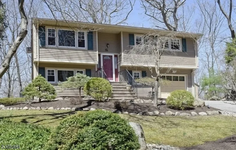 Discover the perfect blend of tranquility & convenience in this updated 1,988 sq. ft. home featuring 3BR, 1.5 bathrooms, & a flexible bonus room ideal as a home office or a potential 4th bedroom. Nestled in the picturesque setting, this home offers breathtaking views while being just minutes from Hopatcong Park, where you can enjoy swimming, fishing, & waterfront recreation. The open concept first level welcomes you with hardwood floors, a pellet-burning fireplace, & modern amenities. Spacious kitchen with granite countertops & stainless steel appliances, flowing into the main living area. Sliding glass doors lead to a large, private deck, perfect for entertaining or unwinding with nature. This level also features a half bathroom, utility room with washer/dryer, & convenient storage. Upstairs, a bright secondary living area leading to a den flooded with natural light with custom shelving...