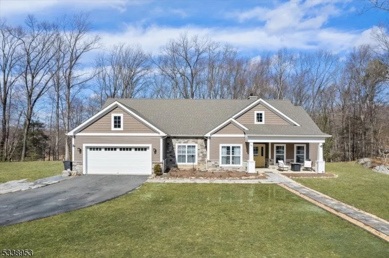 Welcome to this beautiful, meticulously maintained two-year old ranch. It features an open-floor plan with 3 bedrooms and 2 full bathrooms with plenty of room for comfort. The open floor plan and beautiful built-ins add a touch of elegance, while the office space is perfect for working from home. The primary bedroom offers a large walk-in closet and well-appointed ensuite bathroom. The luxury LVP flooring, large rooms, soft-close cabinets and drawers, and upgraded closets add to the home's appeal. The extra shelving in the laundry room and the subway tile fireplace surround are thoughtful touches that enhance functionality and style. The huge 3-car garage is a great bonus for extra storage, workshop or parking. The property itself is impressive, with 1.42 acres of beautiful, wooded surroundings and a fully fenced backyard that provides a serene and private atmosphere. The gazebo, fire pit, and extended patio make it ideal for outdoor entertaining. Being close to Routes 206, 80, and 15, it offers convenient access to nearby amenities and commuting routes. It's truly a dream home!