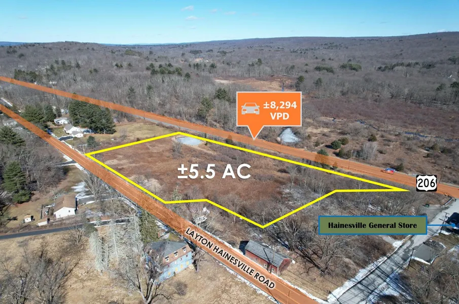 The Property benefits from highly favorable and flexible Highway Village commercial zoning that allows for a very wide variety of uses. The Property is situated between US-206 and Layton Hainesville Road, with excellent visibility on both roadways. The Property is located in Sussex County which is the northernmost county in New Jersey and part of the New York metropolitan area. The Property benefits from traffic counts of approximately 8,294 vehicles per day on US Hwy 206. As of 2021, there were approximately 5,898 residents with an average household income of $94,819 within a 5-mile radius.