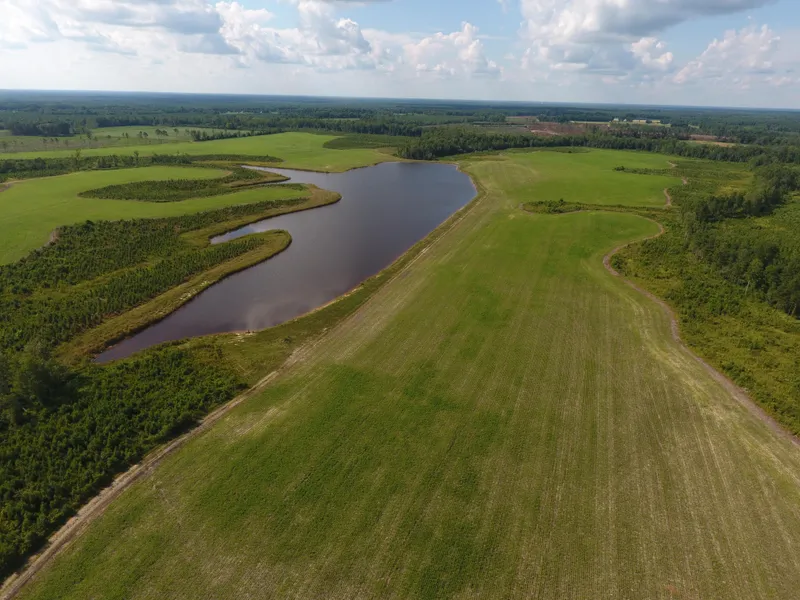 This 725 ac Farm located East of Jarratt, VA, has 2.49 miles of road frontage, and is 1.3 miles from the closest I-95 exit. The farm has 415 acres of cropland consisting of prime soils, slagle fine sandy loam and craven loam. There are four ponds (36 acres) for irrigation and 194 acres of 2015 planted Loblolly pine. The remaining acreage is made up of hardwood buffers and interior roads.