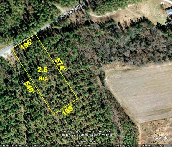 2.5 wooded acres- Approx 200'x 500'- nice level ground- conventional perc.- Owner financing available with just $495 down, $284.88 mo., 15yrs/10%apr