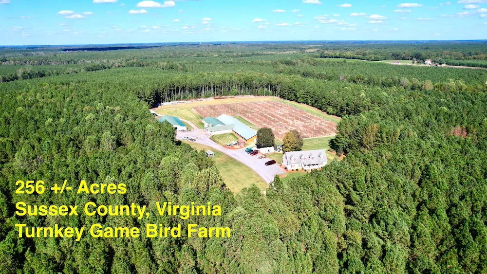 A rare opportunity to own a profitable, fully operational game bird farm spanning three parcels and 256 acres in Sussex County, Virginia. This unique operation is currently raising Bobwhite Quail, Pheasant, and Chukar, offering immediate income potential and long-term investment value. The farm is fully equipped with multiple large bird houses, dedicated pheasant training pens, and the infrastructure and equipment needed for efficient operations. An exceptional modular home, featuring generous living space and custom finishes, could easily serve as a comfortable lodge for guests or a manager's residence. The land itself is a true Eastern Virginia gem- a blend of hardwood and pine timber, with Hunting Quarter Swamp forming the northern boundary and internal intermittent streams, creating scenic and natural wildlife corridors. This diverse landscape attracts abundant deer, turkey, and small game, with several trophy bucks harvested over the years. With extensive road frontage, a solid internal trail system, a strong timber investment, and outstanding game bird production and hunting potential, this property offers a unique combination of lifestyle, recreation, and income. There is ample space for expanding operations, so let your imagination run wild. Whether you're looking for an income-producing property, a premier hunting retreat, or a timberland investment, this farm delivers it all. Please be sure to ask about additional possibilities based on your property objectives. Shown to qualified buyers by appointment only. Contact the listing agent today for details or a private tour.