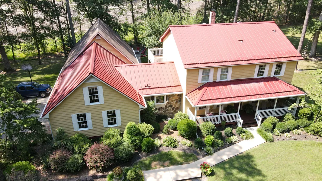 Rare opportunity to own a little piece of heaven. Country farmhouse nestled in the woods w/ a metal roof that has a 50 yr warranty, 8.5 acres & 2nd sep home for family/rental income just mins to Petersburg. Sit on the front porch & marvel at the previous owners lovingly manicured landscape w/ mature trees, flowers & ornamentals. MBR on 1st floor w/ en-suite w/ granite double vanity, garden tub & walk-in closet. Open DR/LR gorgeous windows & stone f/p. An office for working at home. Eat-in kitchen w/ cedar plank ceiling & granite island. Attached in law suite on 1st level that has a sep entrance & screened porch. 2 car att garage has a handicap ramp. Over garage there is a multi-purpose playroom/game/man cave w/ unlimited possibilities & storage everywhere. The 2nd level of the home, 3 generous BR with a full & 1/2 BA. Aesthetics of the yard extend to the rear of the home w/ a concrete patio & playhouse for children. 2nd home is a manufactured/modular home that served as the owners residence while their dream farmhouse was being built. It has 3BR, 2BA & a stone fireplace. Unfinished basement in the main house provides for the possibility of added sq ft. Deeded access for both homes. Total square footage includes both homes.