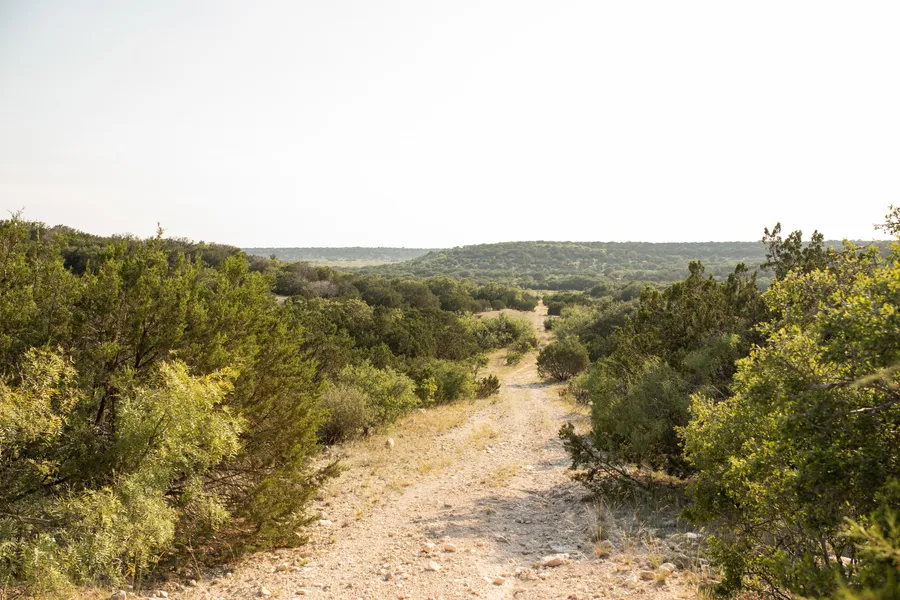 This parcel is a true turn key ranch at the end of the easement road, nobody coming in or out, just you and the whitetail deer, axis, hogs, turkey, black buck and dove. This parcel has good dirt on the western portion with a nice oak tree lined creek bottom that leads its way up to an impressive plateau that offers miles long hill country views. Fully fenced parcel, with a solar well and power in the southwest corner. If you want an affordable ranch that all you have to do is bring your own lock, this is the place for you!!!