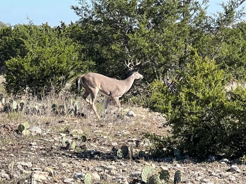 High Lonesome Ranch West is located in NE Val Verde County near Juno, Tx. The ranch is 43 miles SW of Sonora, Tx off Hwy. 189. This region is the southern end of the Edwards Plateau, which creates a landscape of outstanding beauty and diversity supporting a wide variety of native and exotic game species. The terrain on the ranch varies from large wide valleys covered with cedar, widely scattered live oak, hackberry, mesquite, and wild persimon trees to flat topped hills and rugged canyons with escarpment oaks, cedar and native brush cover. Wildlife on the ranch includes native whitetail deer, free ranging exotics (axis deer, aoudad, fallow deer), feral hogs, Rio Grande turkey, quail and dove.