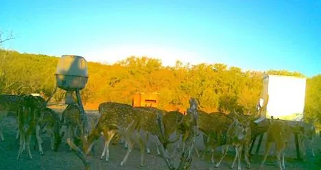 Axis, whitetail, red deer, turkeys, hogs, doves, and fox have been observed on the property routinely, with an occasional black buck.