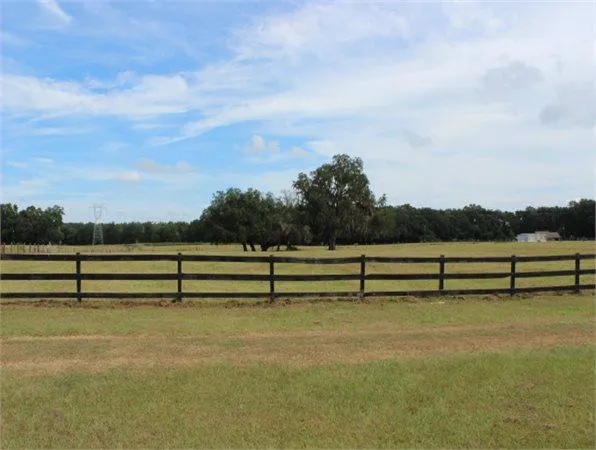 28.48 acres of pasture land with a renovated mobile home. Granite counter tops, slate and laminate flooring throughout, fireplace with cedar and stone. Stainless steel appliances. New metal roof. Large covered deck for cookouts or quiet evenings at home after spending the day at the local springs. Pasture has gently rolling hills and large granddaddy oaks lining the property and driveway. A horse barn with center aisle, 3 metal awnings and a shed. Fenced and cross fenced.