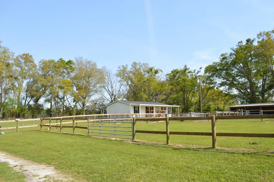 Turnkey horse farm for sale with some of the most beautiful land you will find in North Florida! Rolling terrain, oak trees, good grass, fenced, cross fenced, with beautiful views! Enjoy watching your horses graze in the field while you grill out on either of the front or back covered decks . This is a new 2012 manufactured home sitting on 40 acres of land... OWNER WILL DIVIDE. 2 stall barn with large tack and workshop area, and the property is mostly fenced with quality board fencing. This is a nice, quiet area close to Live Oak (9 miles), a short 17 mile drive into Lake City, 18 miles to I-75, and 13 miles to I-10.