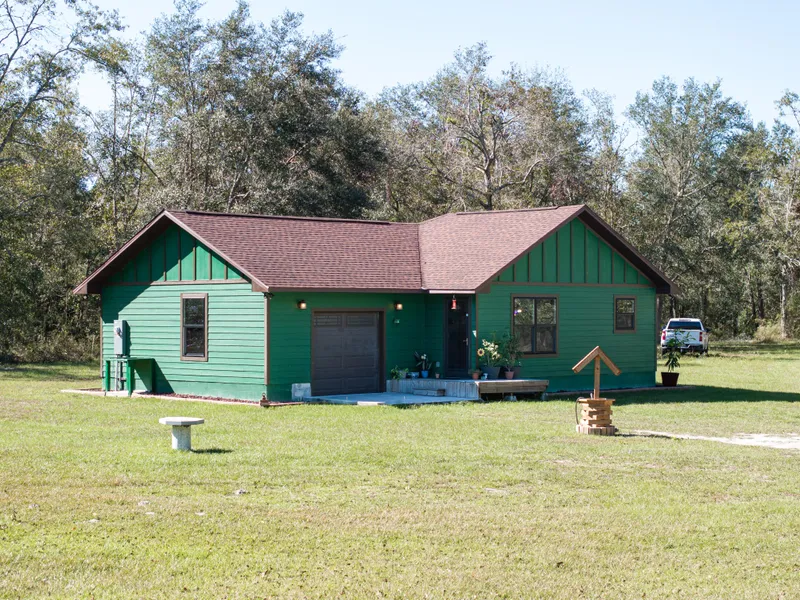 Modern Tiny Home Oasis on 5 Private Acres! Escape to your own slice of paradise with this unique, high-tech tiny home nestled on 5 serene acres between Live Oak and Lake City in North Florida. This beautifully designed 1-bedroom, 1-bathroom home also includes a versatile second room, ideal for a guest bedroom or home office. Every detail has been carefully crafted to offer comfort, convenience, and style. The primary ensuite bedroom has adjustable ambient lighting and a luxurious, spa-like bathroom featuring a walk-in tile shower, an anti-fog mirror with built-in lighting, Bluetooth speakers, and a spacious walk-in closet. Stunning interior with stained pine trim, an eye-catching accent wall, and waterproof vinyl plank flooring for easy maintenance. Smart home conveniences, including coded door locks, a smart garage opener, and intelligent lighting in the living areas. Surrounded by natu...