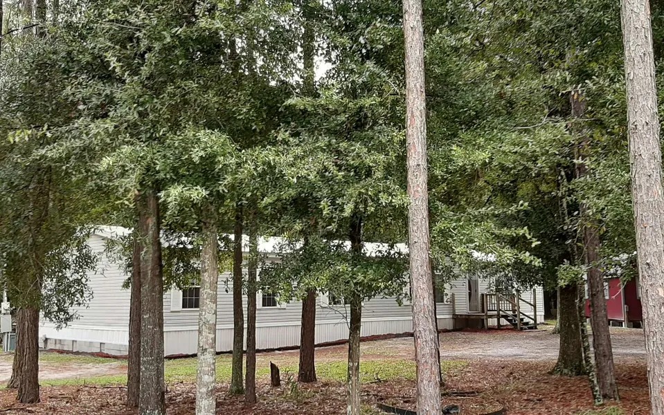 Nestled among the trees this DWMH has lots of open room to offer. Split bedrooms and very open floor plan. Kitchen has new cabinets installed 2018 and a center island. Double fireplace to relax by either in living room or dining room. Ample size master bedroom with walk in closet, bath features shower, double sinks, walk in shower. Family room adjacent to 4th bedroom or office. New Roof in 2019, new AC in 2015, new water heater in 2016. Detached garage 28x25 in 2016 with a 14x25 lean to shelter. Several fenced pens for your farm animals. Vinyl plank flooring throughout. Back covered deck. Red shed does not convey.