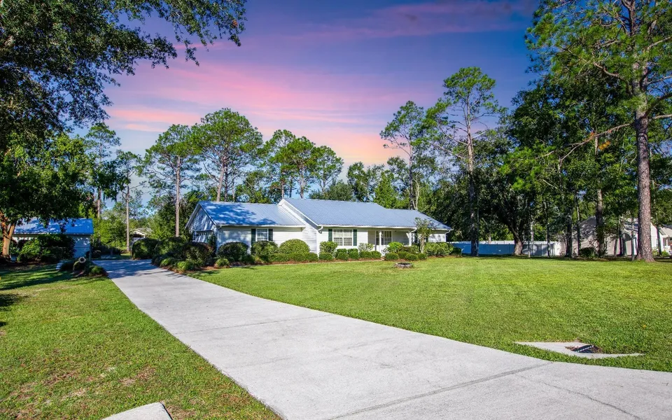Welcome home to this beautifully maintained 3BR/2BA home on 1.05 acres in the highly desirable Foxboro neighborhood, just 4.5 miles outside of Live Oak. This property has been cared for with pride and love, and it shows in every detail, from the manicured yard to the warm, inviting spaces inside. Enjoy peaceful surroundings, friendly neighbors, and a quiet atmosphere from the front or back porch. Inside, you’ll find a bright, open layout filled with natural light, large windows, and French doors that open onto the back patio, perfect for relaxing at the end of the day. The kitchen, updated in 2018, features quartz countertops, modern cabinetry, and plenty of storage, along with a cozy breakfast nook with a bay window overlooking the backyard. It flows seamlessly into the living room with custom built-ins and an inviting, open feel. The master suite includes a large walk-in closet and spacious closets in the other 2 bedrooms. Outside, you’ll love the metal roof, fully fenced back yard, and two garages, an attached oversized garage plus a detached workshop with electric, built-ins, and storage, ideal for hobbies, tools, or a man cave. Recent updates include: roof (2021), gutters (2022), water heater (2022), Trane AC (2012, serviced yearly), and stove (2024). This home is more than just well-kept... it’s been lived in with care and filled with love, ready to welcome its next owners who will appreciate its comfort, character, and charm.
