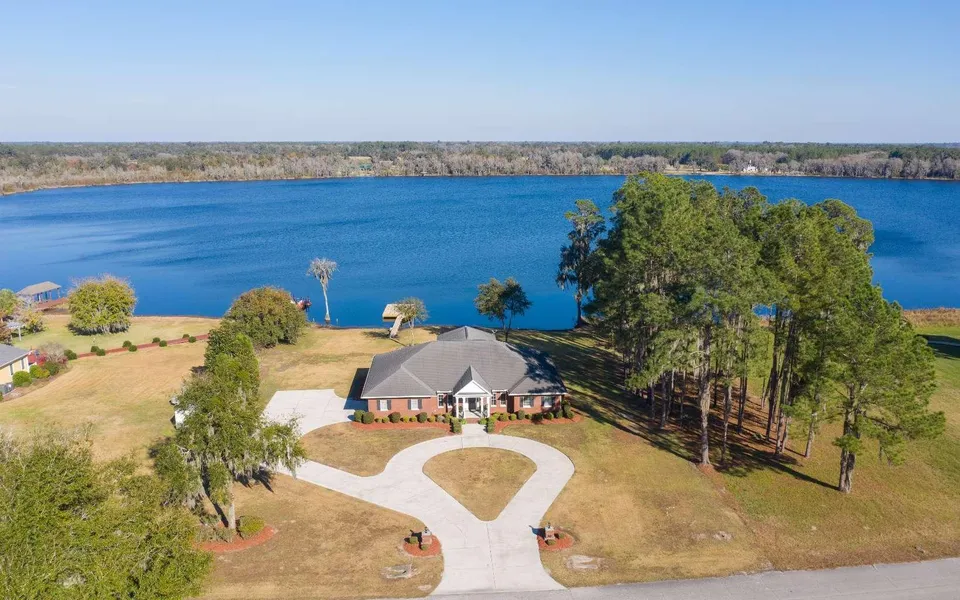 What a dream, living on the 100 acres of spring fed Lake Louise, and you would get to see the sunrise over that lake every morning!!!! This 4B/3b, 3057sqft home has a bonus room upstairs that could be the 5th Bedroom or a home office. Home has an In-law Suite that is very private. There is barely a place in the home that you can't see the lake. Home has a split floor plan, jack and jill bath for 2 of the bedrooms, Pella windows, and the Florida room and the dock is where I bet you will spend most of your time. The home isn't in the flood zone and the owner doesn't pay for flood insurance.