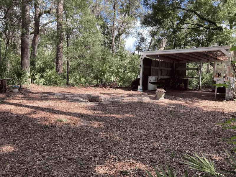 Are you looking for a secluded primitive camp to help you unplug and unwind? Well you found the perfect spot, Located just a short walk from the banks of the historic Suwannee river in Suwannee County. "Sunshine Hill" (named by the prior owner) comes equipped with a 16x20 lean-to style building with three walls. One side is loaded with a very functional but primitive style outdoor kitchen (grill, tea pot, some pans, sink included) and the other side hosts a small counter and plenty of dry fire wood or a dry place to pitch a small tent in case of sub-optimal weather conditions. There is space for a hammock, and there is a nice wooden bench and a designated fire pit.