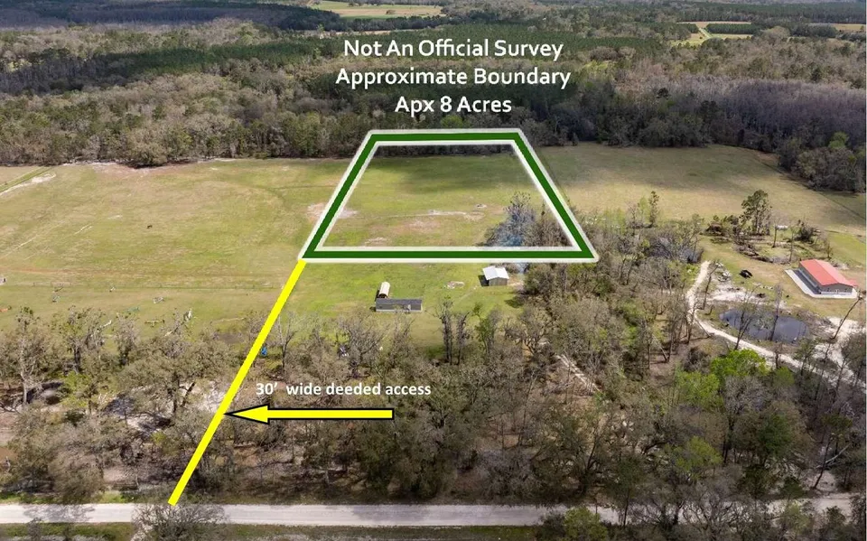 The vacant 8 acres of land boasts a mix of open pasture and natural woods, providing ample space for a variety of outdoor activities and provides the perfect landscape for raising farm animals and horses. Property has a 30' deeded access NOT an easement.