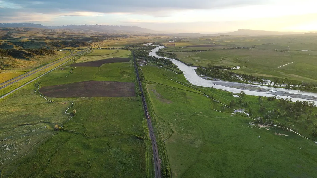 Parcel B is mostly comprised of a 122 +/- acre flood irrigated hay meadow. With easy access off of highway 10 West. The optimum building site is located above the irrigated fields allowing for continued uncompromised agricultural use. Water is delivered to the property through an irrigation ditch and spread across the land using gravity. The natural topography of this parcel allows for optimized views of Sweet Grass County's portion of the Yellowstone River corridor.