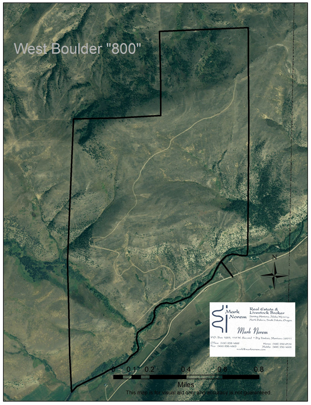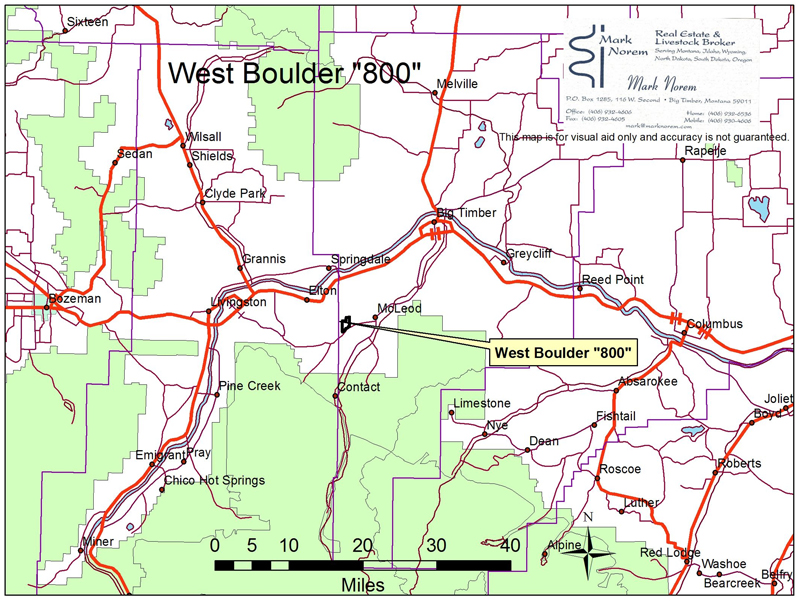 Tremendous fly-fishing opportunity in Montanas most noted neighborhood. This 800+/- deeded acres fronts approximately 1-1/2 miles of the highly sought-after West Boulder River with Big Timber and Livingston equal distances away. Count your neighbors as Montanas most celebrated. Absolutely the most unbelievable views you will ever see from Deeded land. The areas surrounding mountain ranges (The Absarokas, Beartooths, Bridgers, Crazies and Snowies) and four major river drainages (Yellowstone, Shields, Main Boulder and West Boulder) are all a part of your viewscape. Ideal for man and wildlife, with elk, deer and upland game birds all inhabiting the property in good numbers. Private bridge, roads and utilities are in, making this year-round accessible, undeveloped property just waiting for your imagination. PRICE: $5,850,000.