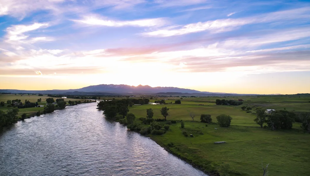 Astonishing vistas expand this 51-acre piece of paradisethe ultimate in privacy, yet conveniently located mid-way between Bozeman and Billings. With direct access to the Yellowstone River, the property beckons one to fish, drift, bird watch, picnic, or simply enjoy the river flow. The seasons bring dramatic, colorful changes to the surroundings while the home provides comfort and opportunities to fulfill dreams. Windows positioned for passive solar benefits, a Tulikivi soapstone stove, and a porch on two sides of the main house are thoughtfully designed to enhance country living. Two bedrooms, one bath, and a loft upstairs compliment the master bedroom and bath on the first floor. The living area on the first floor includes the kitchen, with a view of the river, breakfast nook, library, dining area and living room, entry porch/mudroom, half bath, and laundry room. The guest cabin, over the hill from the main house, offers adventure and solitude right in your own back yard. The two-car garage has ample room for workshop and storage. Approximately six miles from Big Timber, this unique property and home at Lanes End offer access, privacy, and a western, Big Sky way of life between the mountains and the prairie, along the free-flowing Yellowstone River.