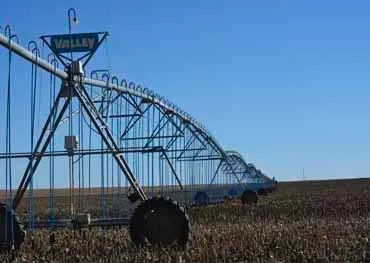 2.) A Valley sprinkler covering 190 acre circle nozzled at 525 GPM utilizing one irrigation well.
