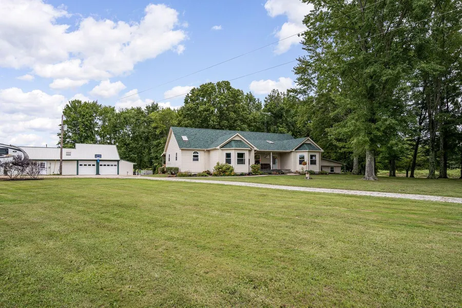 This farm offers a private pastoral setting with the ultimate in safety & energy efficiency! The unique main house is a 2588 sf ranch constructed w/Insulated Concrete Forms (ICF), which offers the ultimate in safety from natural disasters or fire, plus more than 40% savings in heating & cooling costs vs. other more traditional methods of construction. Attached to the main house is a portion of the original home, providing a semi-separated living space for family or guests. Add to that a 2 BR apartment in the nearby pole barn, this property can handle a crowd! Or, live in the main house & rent the apartment for additional income. Lots of upgrades throughout! Beautiful almost level acreage, fully fenced, plus two stocked ponds & 7 acres of woods! 30 acres total!