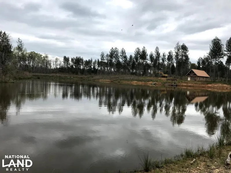 UPDATED PICTURES Brand new cabin built overlooking pond with 152+/- usable acres. The 900 square foot cabin with 380 square foot loft is almost finished and is being completed by the seller whose trade is construction/remodel. It has power, water, central heat/air and a wood stove. Cabin includes 1 bedroom (with closet), 1 bathroom (with tile shower and linen closet), stonework behind the wood stove, living area, full kitchen (granite countertops-to be installed), laundry room, spiral staircase to large loft, etc.!!!! Newly installed light fixtures, septic tank, dry wall and doors. Interior walls feature wood sawn from trees on the property! This is a must see! Property also has a 32 x48 barn with plenty of room for anything you would need. Cabin overlooks a beautiful, 6 acre stocked pond with covered dock to fish from. The property is perfect for hunting/recreational use and has habitat for deer, turkey, ducks. Scott Creek crosses through the West side of the property and includes a large swamp with several Wood Duck boxes. This is a duck hunter's dream! Perfect pine stand that has been thinned sets a great scene to see that big buck from a tree stand. Good road system throughout and infinite possibilities for this tract! Bring your buddies on the weekends or your whole family for a stay to get away from it all! With the ability to hunt here in any season, you'll never want to leave!