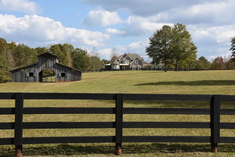 Woodland Lake Estate is a turnkey property which includes all remaining furniture, appliances, and furnishings. With its multiple outdoor living spaces and beautiful grounds, it provides the perfect setting for relaxation and rejuvenation. The entry with its deep porch, wicker furniture and fire pit invites one to enjoy the view of the pasture and lovely trees that dot the expansive front acreage. A two-story foyer leads to a vaulted great room with stacked stone fireplace. This room includes a passthrough to the chef's kitchen which features a breakfast area, large pantry, and keeping room with gas fireplace. Accessible from the kitchen is the back patio with brick fireplace. Wicker patio furnishings which remain provide another option for enjoying early mornings or cool evenings. The formal dining room features judges paneling and an unusual double tray ceiling. The master bedroom suite also features a double tray ceiling, a sitting area, his and her closets, and spa-like bathroom with double vanity, whirlpool soaking tub and separate tiled step-in shower. Also on the first floor is a second bedroom with full bath, laundry room and a large den/study/bonus room with another full bath. Three additional bedrooms and a full bath are on the second floor, with one bedroom furnished with an antique bedroom suite. All rooms have 10-foot ceilings, 8-foot doors and crown molding. Graber plantation shutters can be found on all windows throughout the home.