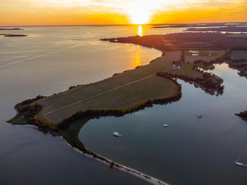 Martins Point Farm has been in the same family since the 1930's and offers 115 acres with 2.3 miles of shoreline! With origins dating to the 18th Century, this gorgeous farm is brimming with history, natural Chesapeake Bay splendor, and extraordinary opportunity for an Eastern Shore life well-lived. The long lane leads you past fields, pasture and historic barns up to the main residence, situated on a point with old shade trees, lovely gardens, and magnificent river views. With 360 degree vistas (including stunning sunrises and sunsets), this property is completely secluded and offers the utmost in privacy. The home's interior is casual yet elegant and boasts high ceilings, double porches, hardwood floors, doorways, and millwork all recalling eras gone by. The oldest part of the house dates back to the 1700's and includes the original kitchen with its wood ceiling and large hearth, a ver...