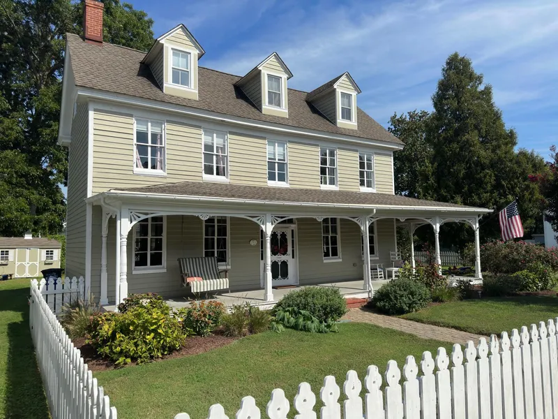 Welcome to the "Valliant House" located in historic Oxford and just a minutes walk to the Tred Avon River, park, shopping, and restaurants. This 5BR/5BA renovated home is sited on .27 acres and offers a large fenced-in yard with mature and attractive landscaping, a gorgeous wrap-around porch, and off-street parking.Built c. 1870, the historic charm is evident with high ceilings, large windows, beautiful hardwood floors, and comfortably scaled rooms. A wonderful chef's kitchen is at the heart of the home with it's large island , stainless appliances, and ample cooking spaces. The living room and library (which could be a first floor bedroom with en-suite bath) both have gas fireplaces, and a separate dining room is adjacent to the kitchen and is wonderful for entertaining. Also on the first floor is an additional full bath and laundry. On the second level, there is the primary suite plus ...