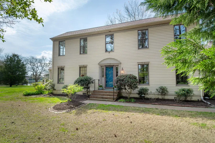 Sublime Water Presence! Great water views of Town Creek from almost every window of this Saltbox style home located on an inland lot in Oxford. Featuring vaulted beamed ceilings, wood floors, skylights and open floor plan. Fabulous sunroom with walls of windows, great room with wood burning fireplace & skylights that flows into the kitchen with generous cabinets, quartz counter and stainless appliances. Formal living room with water views and french doors leading to a wonderful private deck. First floor bedroom with full bath and laundry. Upstairs hosts 2 spacious bedrooms and full bath. Home has abundant storage, 2 car garage, lovingly maintained mature landscaping, and shed all situated quiet lot in town.