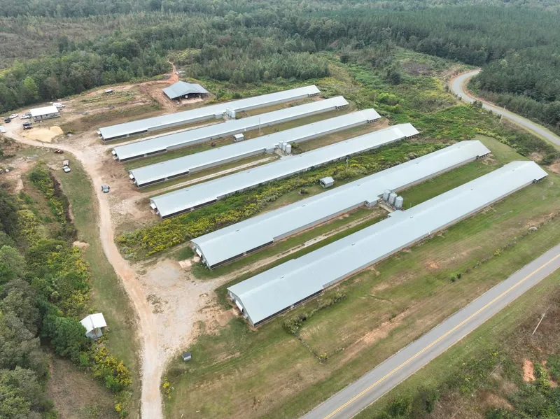 Tallapoosa county 6 house Broiler Farm for sale. This property totals 77 acres and also includes a 1400 sq ft, 3 bedroom 2 bath house and like new 7,000 sq ft pole barn. Located northeast of Alexander City one perk is its quick access to Lake Martin for those recreational days.