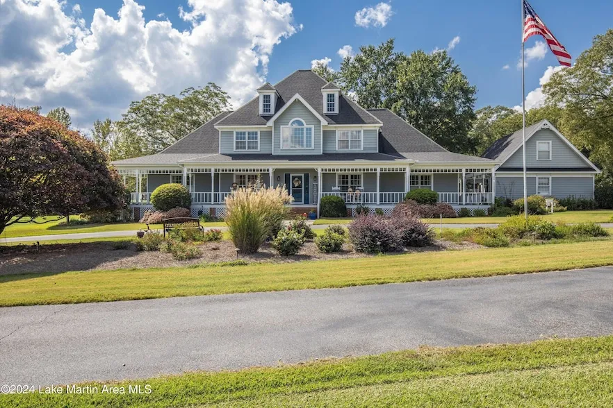 WELCOME TO ONE OF ALABAMA'S MOST PRESTIGIOUS ESTATES, near stunning Lake Martin in the Alexander City area. This custom-built home boasts approx 4,600'and is set on 43 fenced acres, conveniently located between Auburn, B'ham & Montgomery. This 4-BR 3.5-BA home includes a charming sunroom with a pond view & a classic southern-style wraparound porch. Additionally, there's an inviting flagstone patio perfect for outdoor entertaining. The property features a craft room above the 2-car garage, a whole-house water purification system, a spacious pantry, window treatments will stay, also a comprehensive security system w/camera by AVSP Audio Video Security Pro, a Generac generator, 2 propane tanks, & 3 HVAC systems. There is a fantastic barn w/workshop that is fully wired and plumbed. Must See!