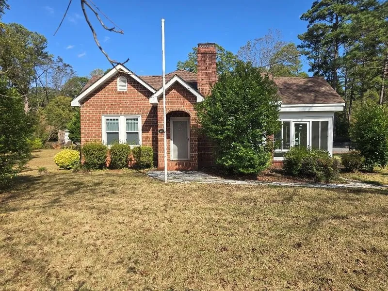 One of a kind historic home on a large fenced corner lot. Built in 1945 this home has lots of charm and character. Brick exterior has a vinyl trim. The side porch is decked and covered and leads to an enclosed sunroom. There's a double carport and two detached storage buildings as well. One has a roll top door. The other side of the house facing the yard also has a covered deck. Inside the home has a large kitchen that has one really large utility room off to the side that leads to the carport. There is a dining area, a den, a living room, 3 bedrooms, and 2 baths. Lots of nooks and crannies to put stuff in too! Very unique home. Home has some of the original wood floors as well.