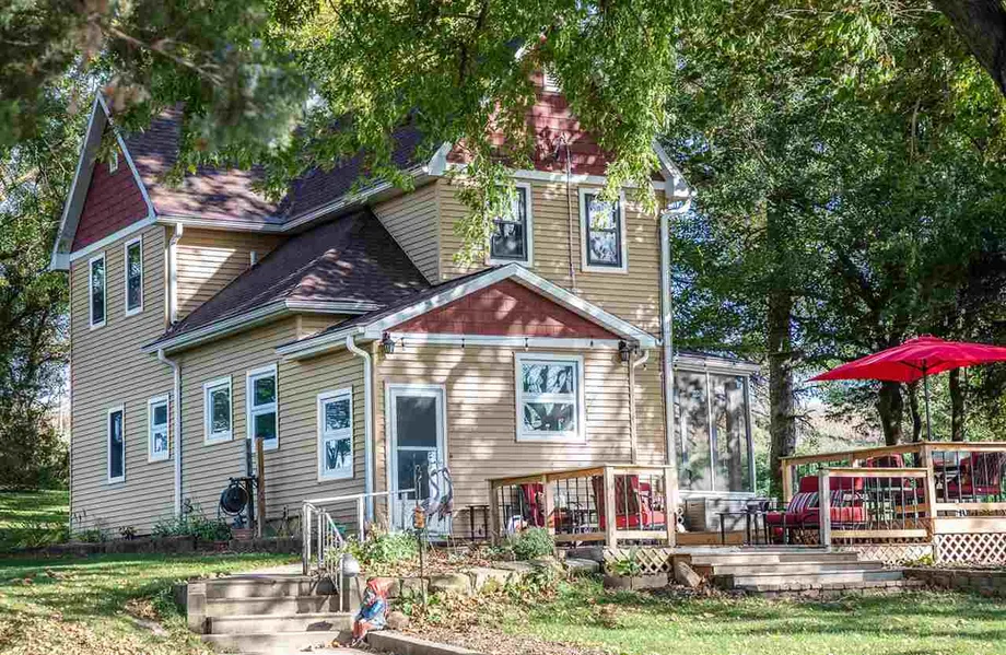 A rare find in Tama County showcasing just over 20 acres of rolling hills with mature trees, native grasses, apple trees, and unparalleled privacy. This amazing opportunity offers a beautiful 2 story home with a plethora of updates sure to please. Upon entering through the back you will find a nice sized mud room from which you can go to the basement or the main home. The galley style kitchen is a show stopper with the elegant granite counters and stylish backsplash complete with appliances. The main floor presents gorgeous newer 3/4 engineered hardwood flooring, a lovely bay window, and space to make it your very own. Off of the living room you will find a den which can easily convert to a bedroom from there is an updated half bath with granite counter and ceramic tile. The 2nd floor presents an impressive full bath complete with heated porcelain tile floors, elegant cabinets, and a jetted tub. 2 generous bedrooms and an adorable half bath completes this space. The basement is clean, offering plenty of storage, laundry, shower space, sink, and toilet. So many updates including an on demand water heater, newer deck, windows, siding, roof, furnace, and central air to name a few. This fantastic acreage is a hunters dream as deer, turkey, pheasant, and geese have been spotted. So many opportunities await, call today for your private tour. *Aerial photos on file. All measurements are approximate. The Stained glass window in full bath will be replaced with a standard window prior to closing.