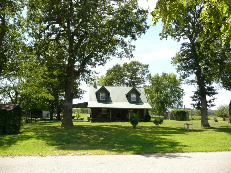 This 205 acre working Ozarks farm features a custom built 2 bedroom, 2 bath home built of native oak and cedar.The 1st level includes an open beam 9' high ceiling, native rock fireplace and a spiral staircase made of native cedar. The house has central air and is additionally heated by an exterior wood furnace. Majestic Oak and Walnut trees shade the yard and house. The 17 pastures are laid out adhering to the Conservation Plan and support up to 60 pairs and allow for up to 175 round bales. Hunting opportunity abounds with the woods and seasonal stream (Hoosier Hollow) bisecting the property. There are two barns, the newer with side sheds. The Aermotor windmill serves 6 frost free concrete watering troughs. There are 5 ponds. Views to the north and south go for miles. The chip seal road is county maintained. There is good Verizon cell service at this property. Thie property is with...