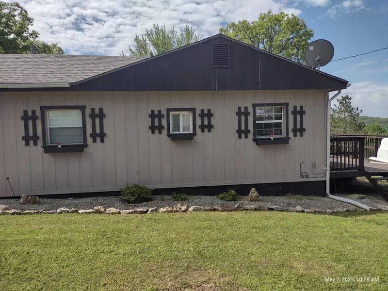 Full time residence or ideal weekend getaway, Located approximately 2 blocks from Bull Shoals lake in small quiet neighborhood on road that dead ends at lake. This home has had lots of nice improvements and is move-in ready. If you live in Springfield, Branson, Hollister or even Harrison this will be your getaway home. Yard is big and inviting and easy to tend. Store all of your inflatables in the man cave behind the house or use it as a She-Shed. New kitchen cabinets and deep well sink. Electric fireplace, laminate flooring throughout with tile in bathrooms. Full time or part time lake life awaits you.