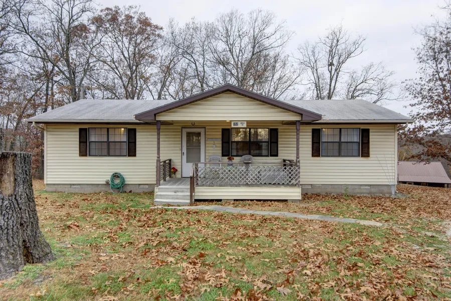 WE CURRENTLY HAVE MULTIPLE OFFERS - HIGHEST & BEST OFFERS DUE BY SATURDAY THE 18TH @ 8PM. Whether you're looking for a second home in the Ozarks or year-round living, this 3 bedroom 2 full bathroom home is blank slate ready for you to make your mark. A split bedroom ranch style home is always a crowd pleaser - add on a large double lot AND just a stones throw away from Big Cedar Lodge? Now that's just gravy! The kitchen is efficient and comes complete with refrigerator, electric oven/range, microwave, and pantry. The eat-in area opens up to the living room complete with wood burning stove, perfect to snuggle up to the fire on a cold winter's day. The primary bedroom has an ensuite with walk-in shower and access to the laundry room. The other two bedrooms are good size and have a full bathroom with tub/shower combo off the main hallway. Other perks to enjoy include the washer, dryer, a circle driveway, 3 storage sheds on the property, tall crawlspace with vapor barrier, covered from porch, and a back deck. Flooring and paint will go a long way on this property, so come create your masterpiece!