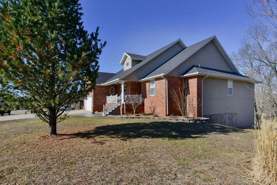 Welcome to 303 Southview Drive, a beautifully crafted four-bedroom, 2+ bathroom home nestled in the peaceful neighborhood of Emory Creek. Situated on a generous 1.32 acre lot, this property offers bountiful space for storage and seamless indoor-outdoor living with upper and lower decks, ideal for entertaining or enjoying the Ozark wildlife. The inviting front porch, rare in the neighborhood, adds to the curb appeal, welcoming guests through the foyer into a spacious open floor plan. Complete with granite countertops, attractive cabinetry, and generous natural lighting, the kitchen is both pleasing and efficient. High ceilings enhance the home's airy and expansive feel complemented by hardwood floors and stone fireplace surround. Need room to grow? The unfinished lower level has boundless potential. This home is a perfect blend of comfort and convenience in a prime location, and ready to ...