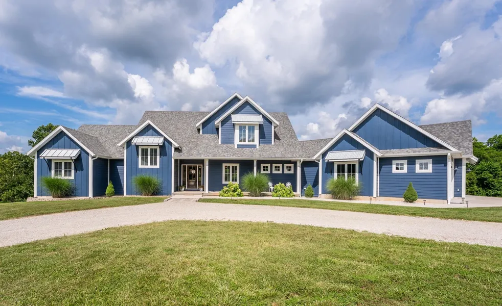 Once in a lifetime opportunity to own this Stunning 17 Acre +/- Modern Farmhouse Estate. This unrestricted, secluded, scenic, and usable land just 1.5 miles from Bull Shoals Lake and 10 minutes to Lake Taneycomo. NO HOA's! This property offers a mix of open pasture, valley views, wet-weather creek, and abundant wildlife. Partially fenced, bring your horses, or a little livestock, great recreation property. The custom-built Modern Farmhouse-style home features 4 beds, 3.5 baths, and premium finishes throughout. Highlights include multi-width 3/4'' hickory flooring, reclaimed hand-hewn oak beam accents, vaulted and shiplap ceilings, quartz countertops, and a wood-burning fireplace with blower. Chef's kitchen with custom cabinetry, induction cooktop, and professional-grade appliances. Spacious master suite with custom tile shower, soaker tub, and dual vanities. Additional features:* Public water, private septic, fiberoptic internet* Remote security gate with touchpad* Walk-in pantry & laundry room* Above-ground pool with grilling porch and walkout basement* 2 HVAC systems (one dual fuel w/ propane backup)* 2 concrete storm shelters with steel doors* Wet bar, jack & jill bath upstairs, large basement storage room* 3-car garage with attic storage* Raised garden beds, fruit trees, thornless blackberries* 2 frost-resistant hydrants**36' x 54' shop building includes:*** 2 oversized parking bays* Attached 12'x36' parking pad* Apartment with full kitchen, bathroom, washer/dryer, and mini-split HVAC* Fire-rated sheetrock between apartment and shop* Covered porchJust 25 minutes to Branson. Suitable for horses, cattle, or future development. Shown by appointment only to pre-qualified buyers. All Measurements Are Approx. All information is deemed to be reliable, but Buyer and Buyers Agent please do own Due Diligence on Rules and Regulations and other matters.