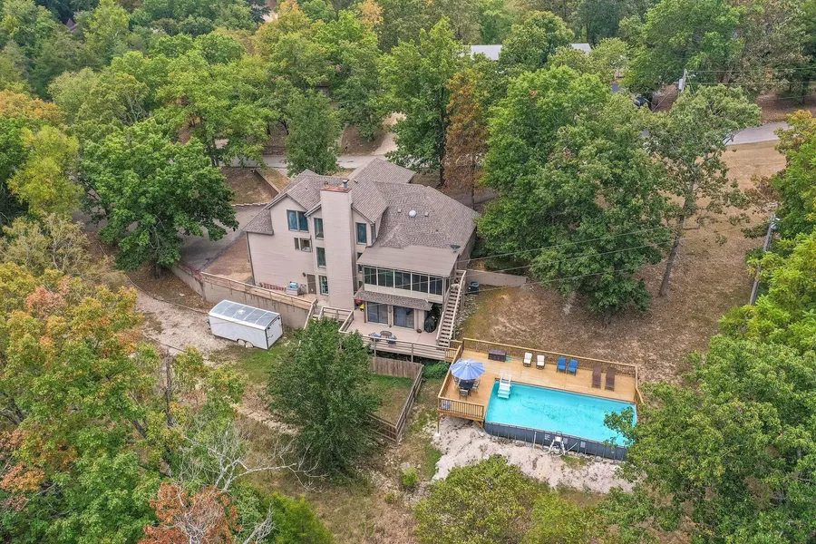 Welcome home to 298 Sunny Brook with no HOA. This stately, well-built custom home is located in a desirable Branson neighborhood conveniently located near all Branson has to offer, yet tucked away in a peaceful setting. When arriving, appreciate the large 3 car garage with epoxy flooring or the circle drive offering plenty of parking for guests. This home has been lovingly maintained and offers great updates throughout including 2 full bathroom remodels, new windows, new a/c and a new roof to name a few. Enjoy open concept living with kitchen, dining and living room all connected. The main level also offers a great enclosed patio with heat for use throughout the year, a 1/2 bath, full size laundry with pantry space and the impressive owner's suite. You'll love the large primary bedroom with custom accent wall and the recently remodeled 5 piece ensuite complete with a beautiful jetted shower and the expansive walk-in closet. Going up the statement spiral stair case you'll find a spacious bedroom with high ceilings and updated ensuite, plus a bonus space across the balcony great for an office or hobby area. Heading downstairs is a generously sized family room with a cozy wood burning fireplace, 2 more bedrooms (one non-conforming) and a recently remodeled bathroom. This grand home has an additional enclosed porch on the lower level perfect for entertaining or for enjoying the peaceful setting throughout the year. The 2 level deck has stairs on all levels to access the recently installed 33x15 pool with swim deck and partially fenced-in yard perfect for your fur babies. Be sure to check out the video to better appreciate the layout and schedule your viewing today of this impressive home.