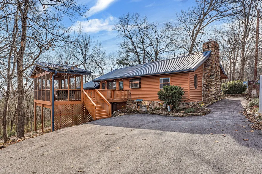 Exceptional two-home property in the Hollister School District, conveniently located near Branson Landing and downtown Branson. Sitting on just over one acre, this unique property offers privacy, room to expand, and incredible flexibility in a quiet setting. Both homes have been extensively upgraded and feature new HVAC systems, updated wiring, new porches and stairs, and windows, providing peace of mind for the next owner. Nearly everything you see and many things you don't have been thoughtfully updated to make ownership easy and worry-free. The main 3 bedroom, 2 bath log home welcomes you with rich cedar walls, a cozy wood-burning fireplace, and a layout that feels warm and inviting from the moment you walk in. Enjoy your morning coffee on the high deck or unwind in the screened-in sun porch, ideal for relaxing in every season. The home also features a charming claw-foot soaking tub, ...