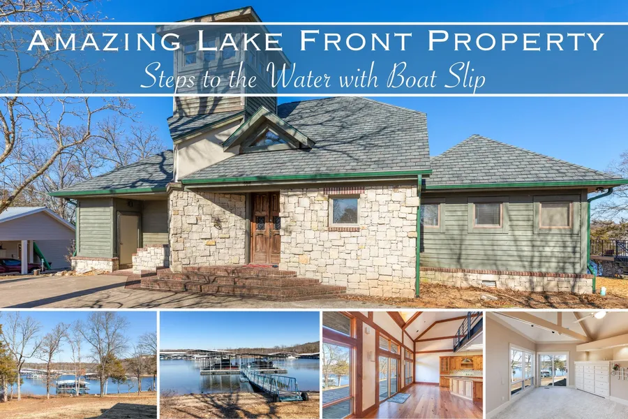 Walk to the Water from this Unique Lakefront Home! 10 x 28 Boat Slip available right behind the house! This 2 bedroom, 2 1/2 bath, 2574 sq. ft. rock home features incredible lake views, large open living concept, 2 master suites, bonus loft area with fun little bonus room for the kiddos and more! Your boat slip is steps away! It's time to start living the lake life! Located in the coveted subdivision, The Point, next to State Park Marina & Minutes from Hwy 65!