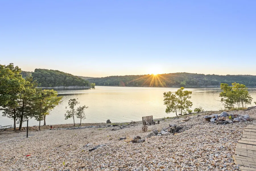 Unmatched 180 Panoramic Table Rock Lakefront Estate (You must watch the video). A rare chance to own 2.4 private acres with 260+ ft. of the most incredible walk-to-the-water frontage and a zero-entry shoreline--perfect for kayaking, fishing, or peaceful paddles from your backyard. Enjoy year-round sunset views spanning 180+ and a short golf-cart ride to a coveted 12x28 boat slip (available). This is a true legacy property, ideal for generations to come. This one-owner, custom-built 5 bedroom 4 bath home offers over 3,900+/- sq ft across two levels with 10-ft ceilings, 8-ft doors, heart-of-hickory floors, custom birch cabinetry, & 5 cars worth of garage space--all thoughtfully designed for timeless elegance. The main level features a stunning water-view hearth room with custom painted-glass art, a chef's kitchen with bar & informal dining (all with lake views), a spa-like owner's suite with walk-in closet and panoramic vistas, full guest bath, laundry, and attached 3-car garage. Outdoor living shines with a screened year-round sunroom and expansive composite deck--perfect for quiet mornings or entertaining. Downstairs: a spacious family room with wood-burning stove and walk-out patio, two guest bedrooms with Jack & Jill bath, a game/exercise room, storm shelter, abundant storage, and flexible bunk/play space. Plus, a John Deere room and detached 2-car garage for extra vehicles or lake toys. Modern upgrades include a whole-home generator, tankless hot water, alarm system, and full-home filtration with UV sterilizer. Tucked away for privacy yet minutes from Big Cedar Lodge, Johnny Morris Legacy attractions, and Branson's top dining and entertainment.150 Sherwood Forest Ln isn't just a home--it's a lakeside lifestyle defined by beauty, tranquility, and lasting memories.