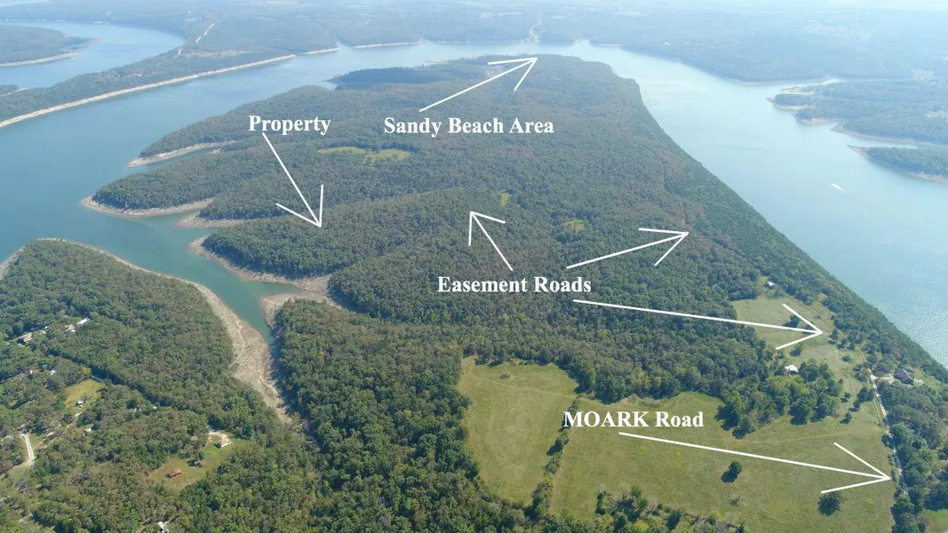 The property is actually only about 15 miles southeast of Branson although by road it is about 30 miles (they wind around quite a bit). If you enter the address: "2904 MOARK Road, Cedar Creek, MO 65627" into your gps/phone it should take you to the end of the paved road (MOARK Road). You will then go left through the entrance area and proceed south to the property on the private easement roads. We will be happy to email you the maps if you would like. Since you cross the state line about 1/4 of a mile before you get to the property, it is actually located in northernmost Arkansas.
