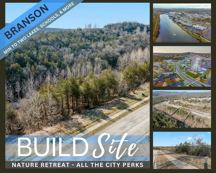 Spring has sprung and it's time to break ground and build that forever dream home at Country Ridge Way! Now offering your own slice of the peaceful Ozark Hills nestled in the heart of Branson with world class dining/shopping/entertainment, airports, hospitals/medical care, Branson Schools, etc. Also approx 10 minutes to Silver Dollar City, Branson Landing, Walmart, Target, The Social Birdy, Rec Plex, Tanger Outlets, and approx 20 minutes to quick and easy lake access at State Park Marina on crystal clear Table Rock Lake and multiple boat up restaurants/ski shops by water. Itching to hit the golf course?! Head over to one of 11 local golf courses, Ledgestone Championship Golf Course in 10 minutes or the popular Buffalo Ridge or Top of the Rock lovingly created by Johnny Morris (also approx. 20 min away) to tee it up and afterwards try out one of several fine dining restaurants or spas at Big Cedar Lodge, all sure to knock your socks off. And the build site! Two wooded/partially cleared lots for ample room to grow and cut in your own little nature oasis w/ abundant local wildlife making you feel away from it all yet with all the city perks including public water/sewer, electric at site (hook up fees apply), sidewalks to take the kiddos or fur babies for a stroll and peace of mind. Here at Country Ridge Way you can truly have your cake and eat it too. New cherished memories await minutes to all your daily desires/adventures on a property you can call your very own in the heart of the rolling Ozark hills.
