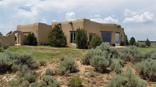 Attractive custom designed Pueblo style 2 bedroom 2 bath home on 10 acres. New stucco, buyer gets to select the finish color!Stunning views in all directions. Two car heated, finished garage, with 2 x 6" walls, laundry room. Home is quality 2 x 8", constructionfilled with insulation, saltillo tile floors, Hurd Metal clad windows and big vigas. There is a hot water circulating loop, so you have hotwater right away. Radiant in floor heating. Skylights. Heated garage could become a large bedroom, or many other uses. The roof hasjust been re-coated, window seals replaced. Boiler has been serviced for the winter heating season. Just the right amount of attractivelandscaping. Patio overlooks Bighorn sheep range. 650' deep well. Splendid views of Taos Mountain and the Sangre de Cristos fromthe large living room windows. The property is adjacent to the Rio Grande del Norte National Monument boundary and BLM publiclands. Just hop the fence and walk to the rim of the Rio Grande Gorge. Check out the map link for location, it's amazing! Just a quickdrive on paved roads to Ski Valley, or Taos shopping.
